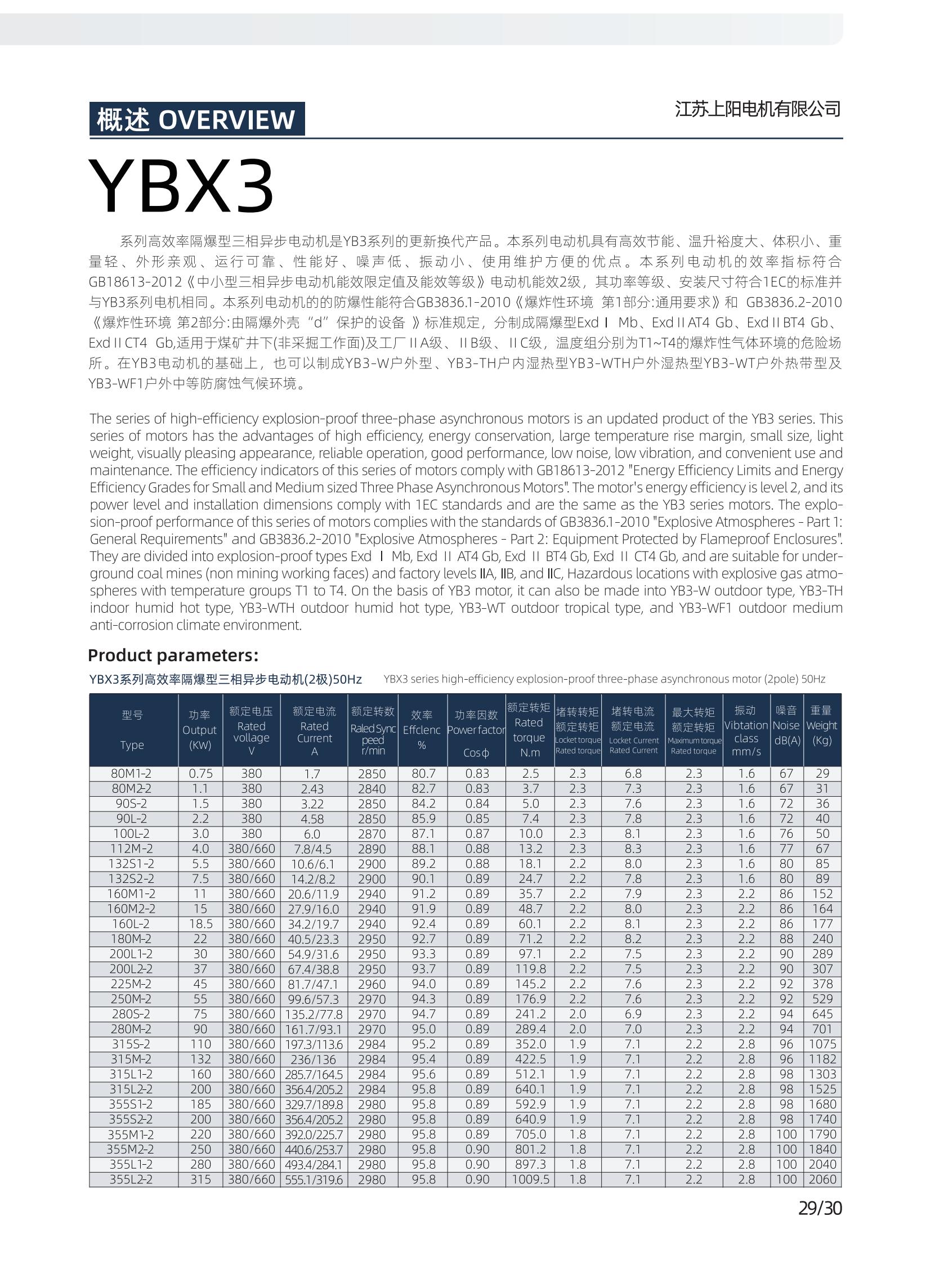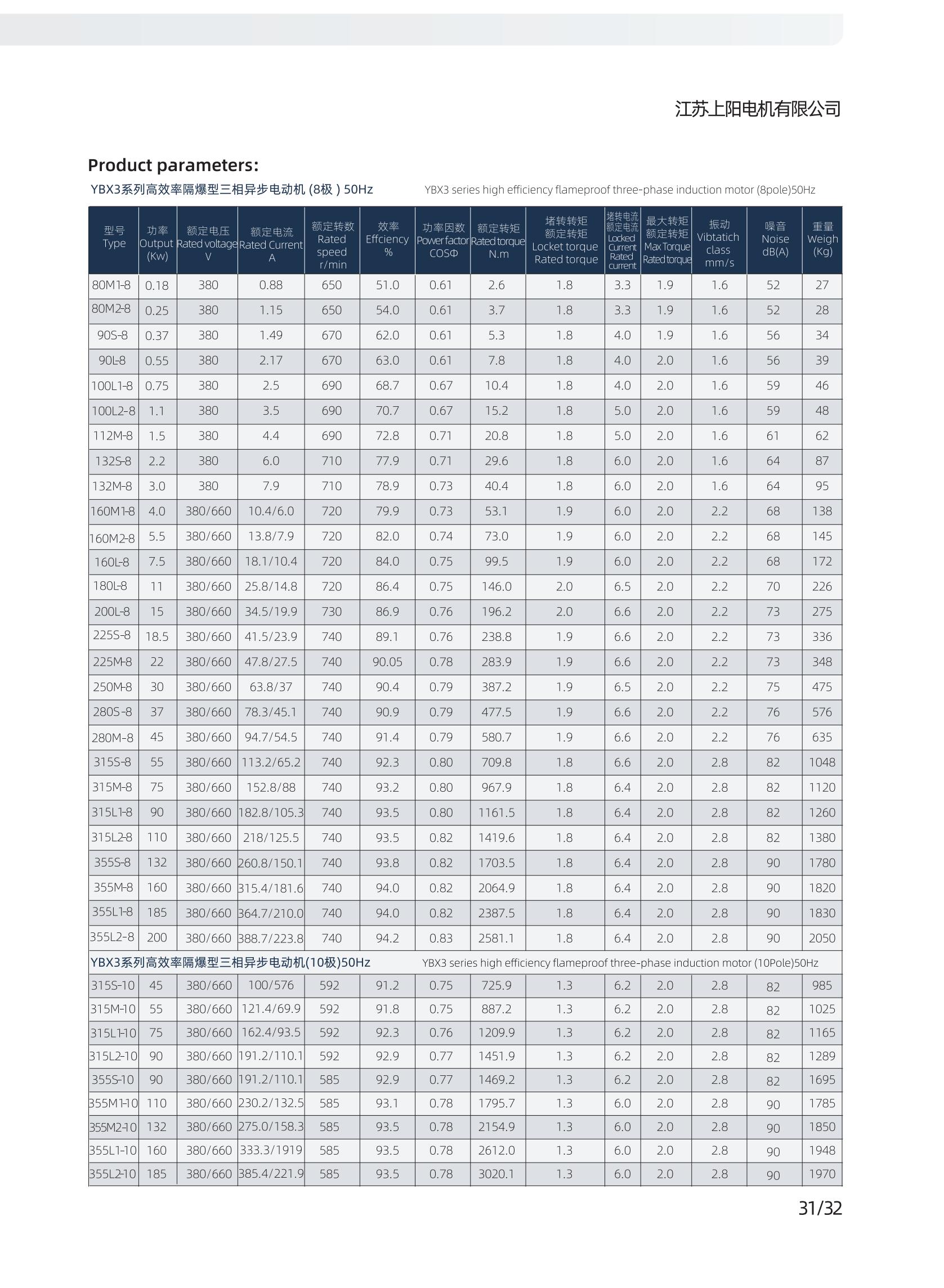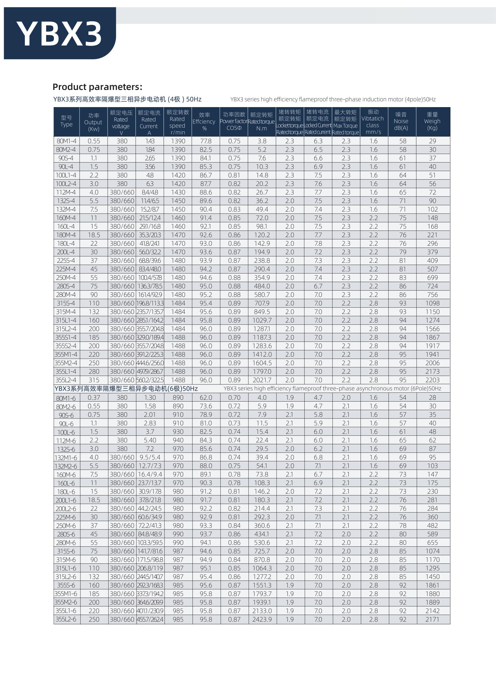 YBX3系列高效率隔爆型三相異步電動(dòng)機(jī)是YB3系列的更新?lián)Q代產(chǎn)品。本系列電動(dòng)機(jī)具有高效節(jié)能、溫升裕度大、體積小、重量輕、外形美觀、運(yùn)行可靠、性能好、噪聲低、振動(dòng)小、使用維護(hù)方便的優(yōu)點(diǎn)。本系列電動(dòng)機(jī)的效率指標(biāo)符合GB18613-2012《中小型三相異步電動(dòng)機(jī)能效限定值及能效等級(jí)》電動(dòng)機(jī)能效2級(jí),其功率等級(jí)、安裝尺寸符合IEC的標(biāo)準(zhǔn)并與YB3系列電機(jī)相同。 本系列電動(dòng)機(jī)的防爆性能符合GB3836.1-2010《爆炸性環(huán)境 第1部分:通用要求》和 GB3836.2-2010《爆炸性環(huán)境 第2部分:由隔爆外殼“d”保護(hù)的設(shè)備 》標(biāo)準(zhǔn)的規(guī)定,分別制成隔爆型Exd I Mb、ExdⅡBT4 Gb、ExdⅡBT4 Gb、ExdICT4 Gb,適用于煤礦井下(非采掘工作面)及工廠ⅡA、ⅡB、ⅡC級(jí),溫度組分別為T1~T4的爆炸性氣體環(huán)境的危險(xiǎn)場(chǎng)所。 在YB3電動(dòng)機(jī)的基礎(chǔ)上,也可以制成YB3-W戶外型、YB3-TH戶內(nèi)濕熱型、YB3-WTH戶外濕熱型、YB3-WT戶外熱帶型及YB3-WF1戶外中等防腐蝕氣候環(huán)境。